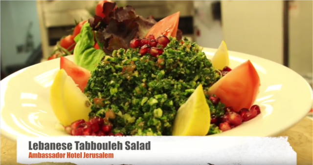 Salads, Salads, Salads, we get it…Healthy. Why not take the Healthy part and make a different kind of Salad. On The Road Eats is in Israel again with my friend and fellow chef, Ahmad Ashayer – Want to know how the Best Tabbouleh salad is made? The Ambassador Hotel in Jerusalem is the place to go.